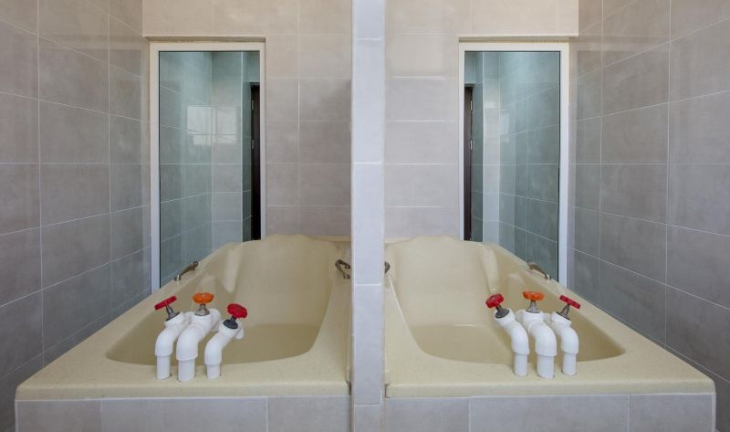 В каждом номере большой балкон, с приспособлением для сушки белья и просторная ванная комната, с феном, ароматными принадлежностями для водных процедур и нежными разноцветными полотенцами.