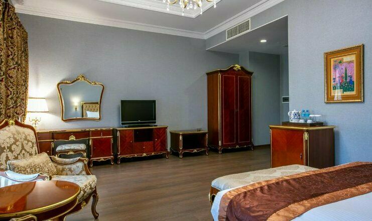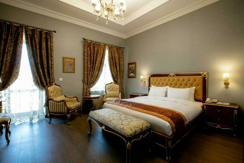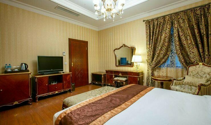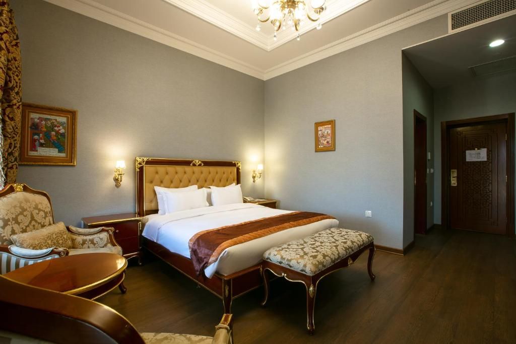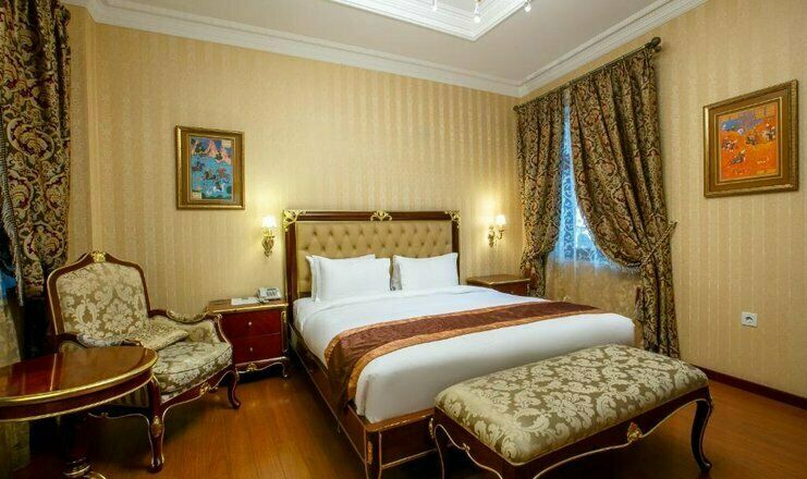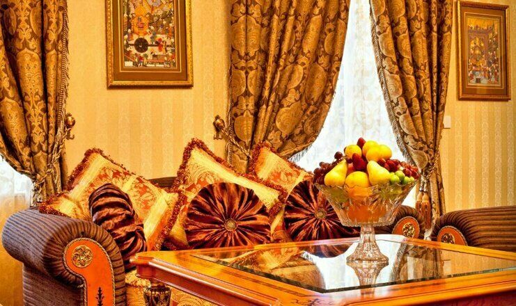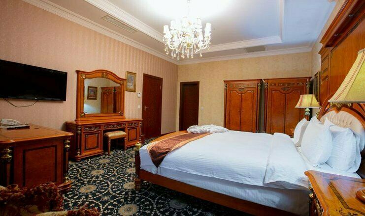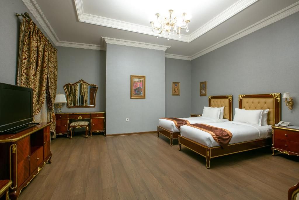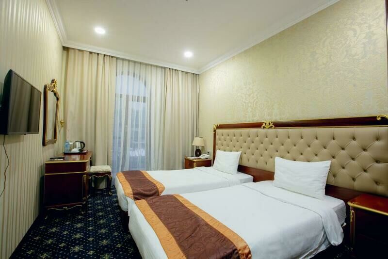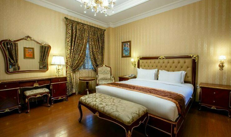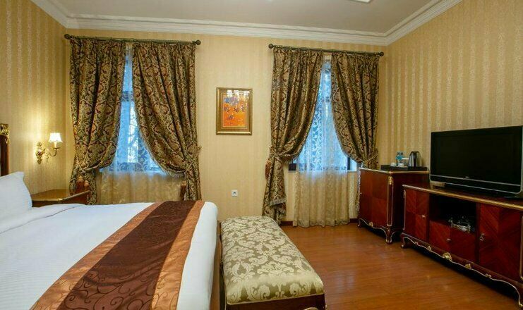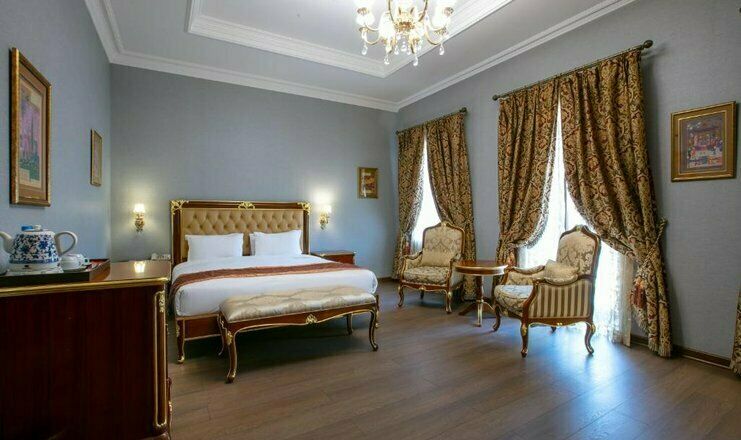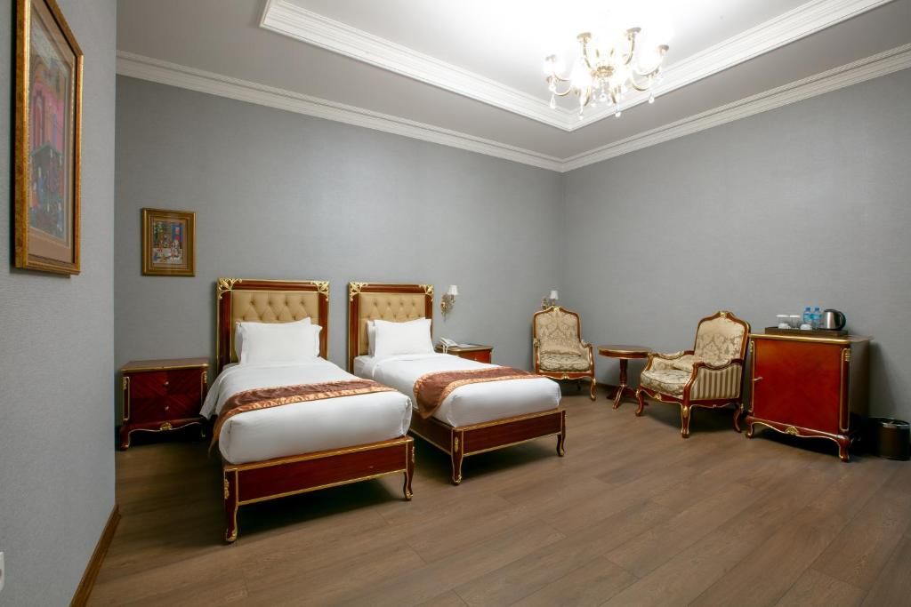 Лаконичный с виду четырехэтажный корпус отеля внутри похож на сказочный дворец. В интерьерах, украшенных натуральным резным деревом, камнем и мрамором, царит атмосфера настоящего Старого Баку. Жилой фонд включает в себя 47 номеров, в каждом — роскошный интерьер, выдержанный в классическом стиле с добавлением национальных мотив. Все комнаты оборудованы кондиционером и индивидуальным санузлом с душем, везде есть плазменный телевизор, фен и беспроводной интернет.