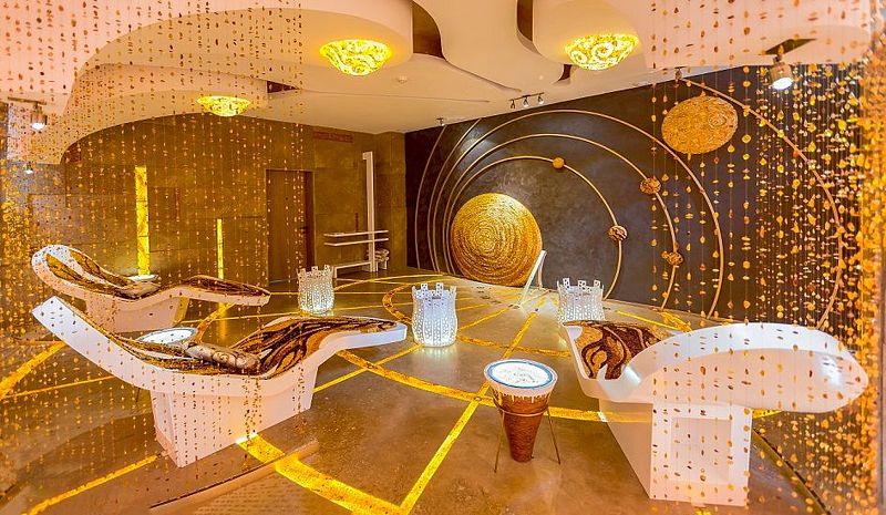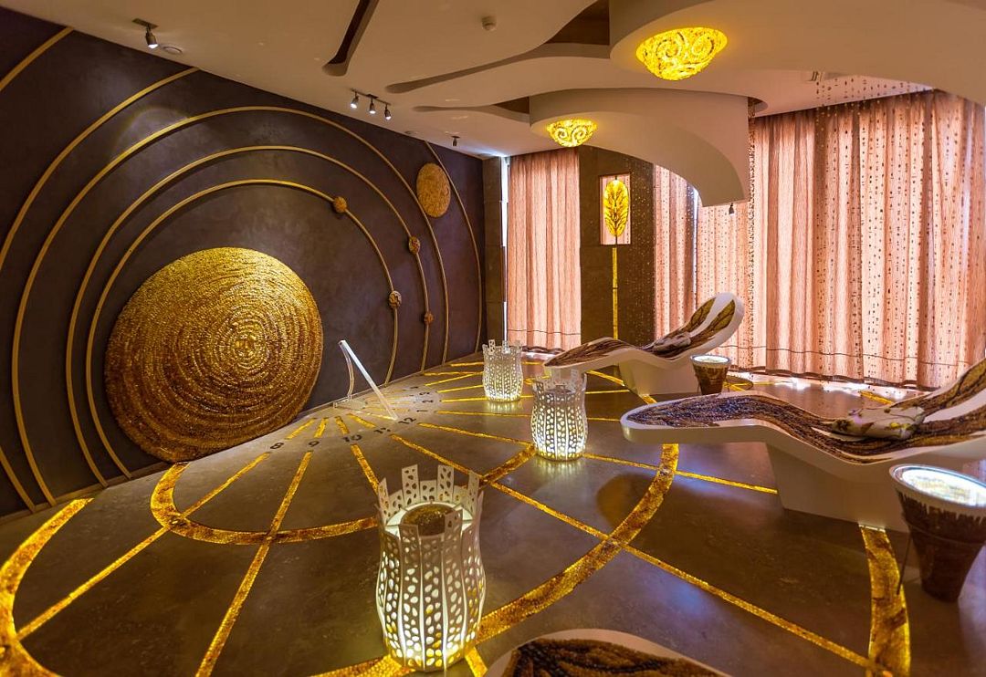 Янтарная комната, полностью изготовленная из янтаря, делает СПА центр исключительным.