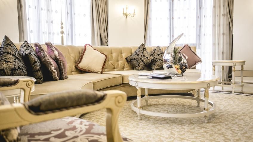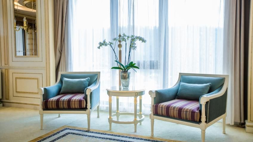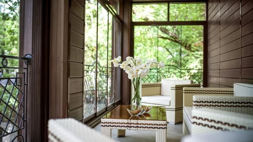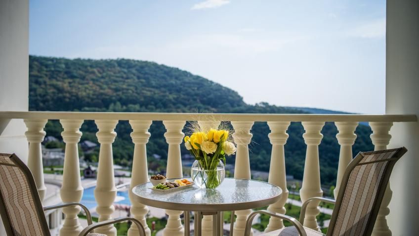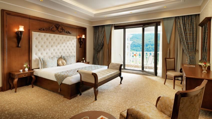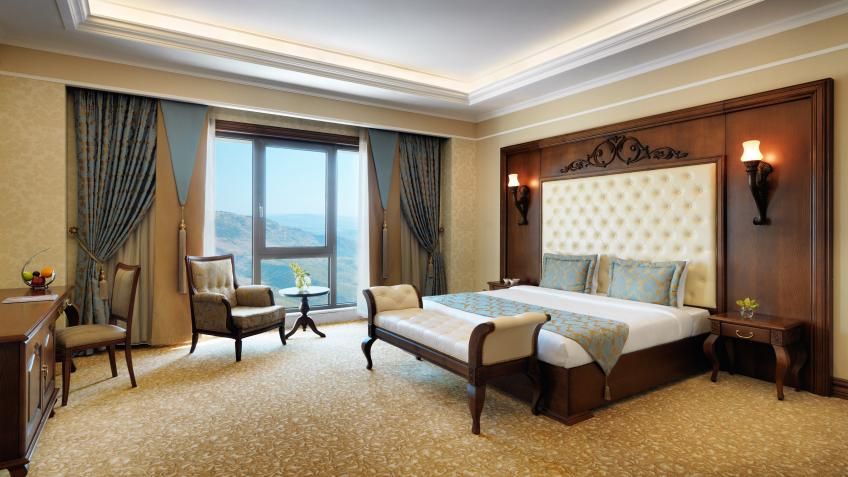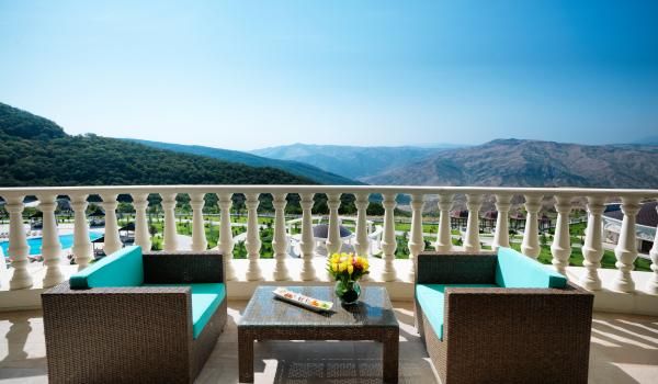 Для размещения гостей предоставлены 106 номеров в главном 7-этажном корпусе с лифтом, а также 12 отдельно стоящих коттеджей. Все комнаты оснащены дизайнерской мебелью, в них есть мини-бар, телевизор с кабельными каналами, кондиционер, балкон с великолепным видом на горы. Санузел индивидуальный для каждого номера, с душем или ванной. Гостям предоставляются туалетно-косметические принадлежности, полотенца, тапочки, мягкие халаты. В домиках предусмотрена кухня для самостоятельного приготовления еды, а также обеденная зона.