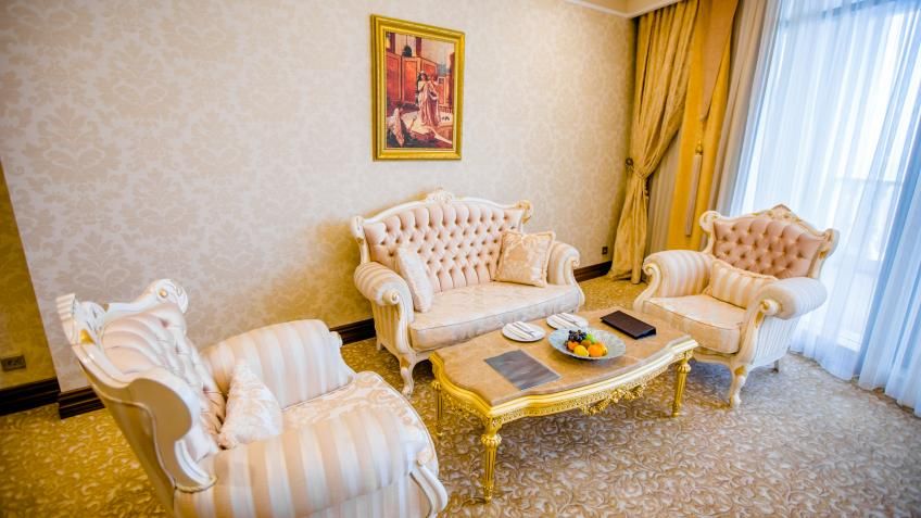 На территории курортного комплекса работают 3 ресторана, где подают блюда азербайджанской кухни. На 1 этаже отеля находится паб, в котором можно насладиться вкусными закусками и напитками. Возле бассейна есть открытый бар. Для веселого отдыха гости могут отправиться в ночной клуб. Возможна доставка еды и напитков в номер. Освежиться отдыхающие могут в большом открытом бассейне, возле которого расположены шезлонги.