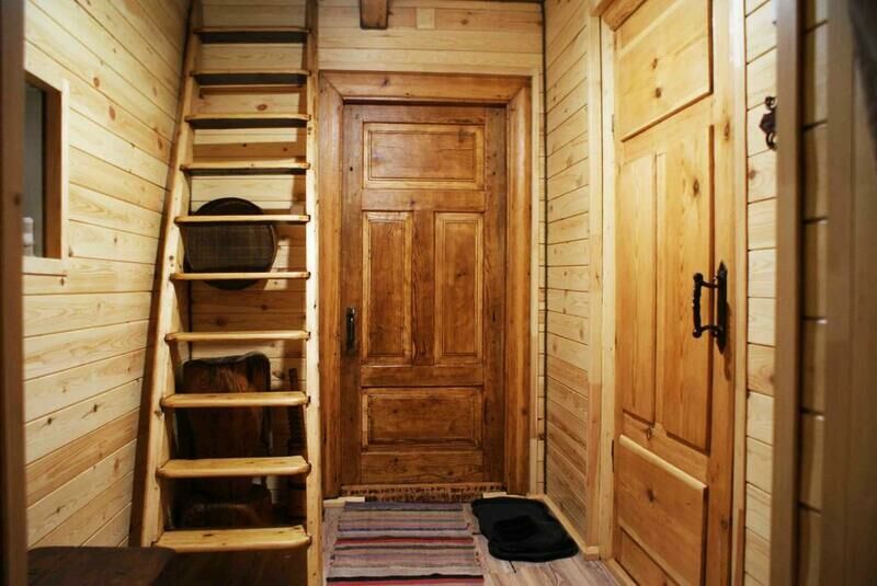 Двухэтажный особняк с диваном и принадлежностями для чая/кофе. Из окон открывается красивый вид. Размер дома: 65 м².
