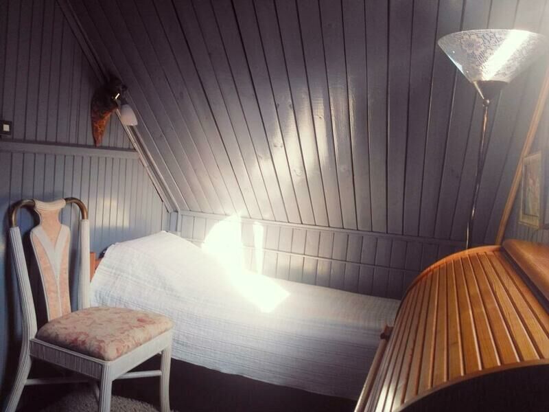 Двухместный номер с большой двуспальной кроватью на втором этаже. Площадь номера - 8 м².