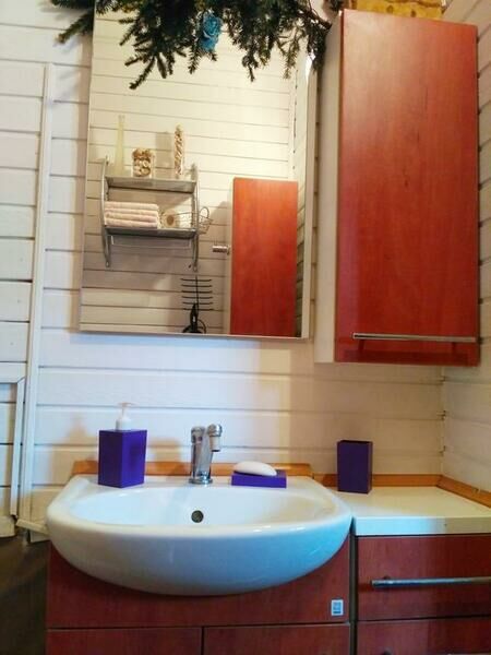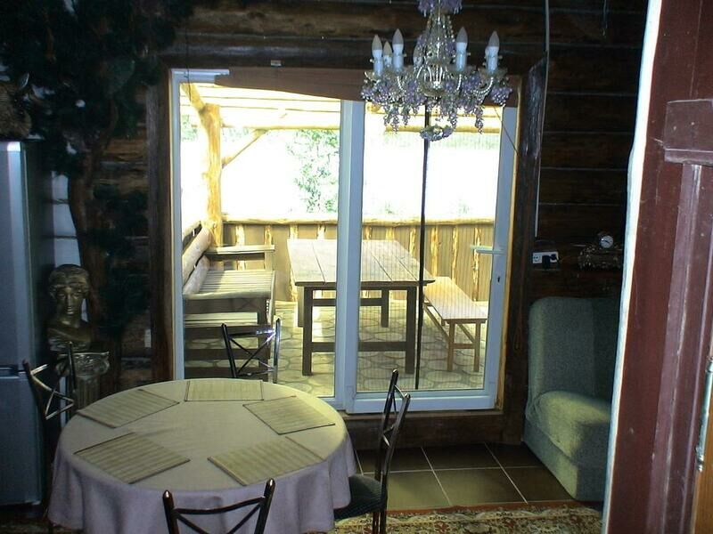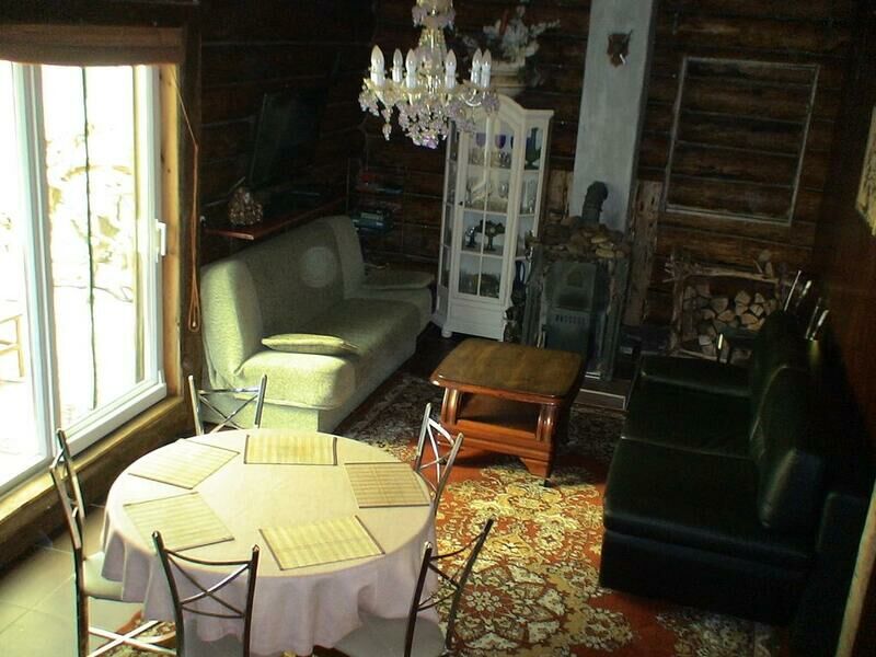 В доме три комнаты, кухня, санузел. Всего здесь с комфортом могут разместиться до 10 человек. Размер дома: 100 м².