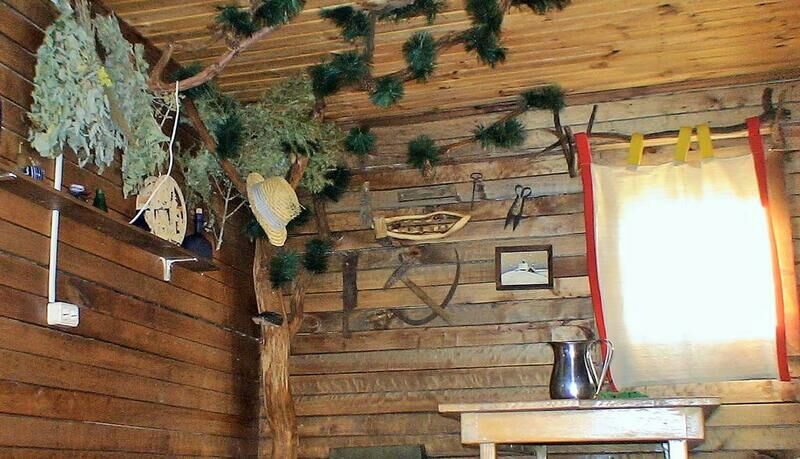На территории усадьбы находится настоящая русская баня из бруса с обустроенной комнатой отдыха и душем.