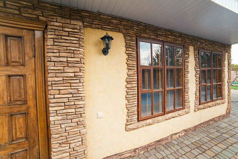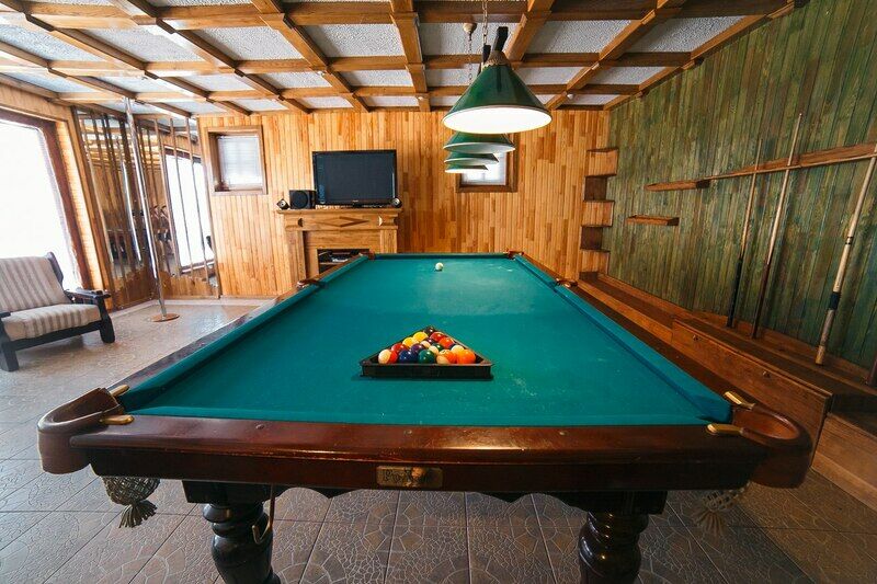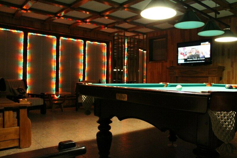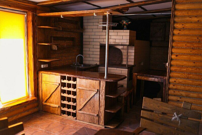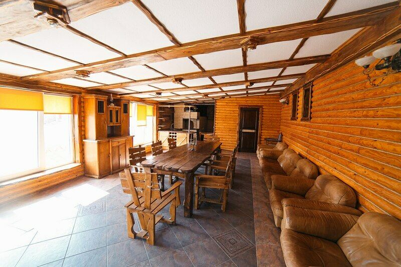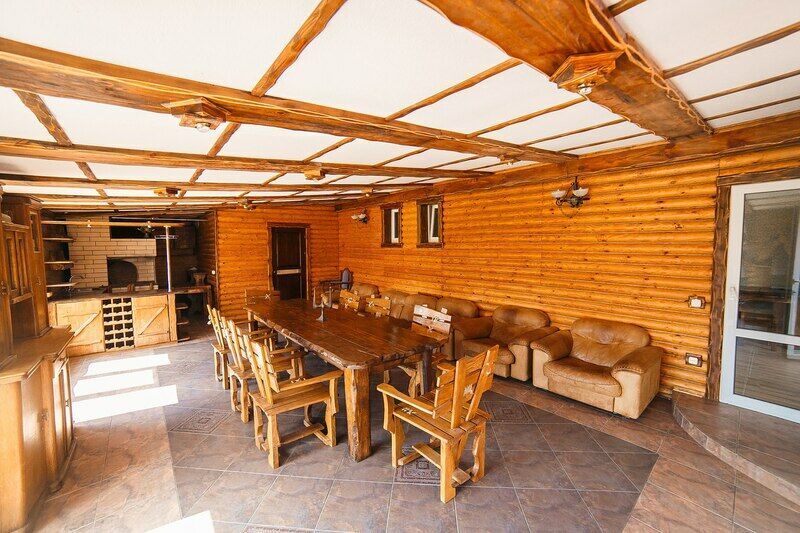 Крытая утепленная веранда с барной стойкой и большими столами для посиделок.