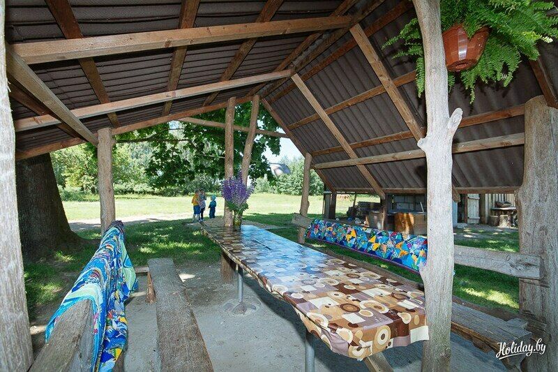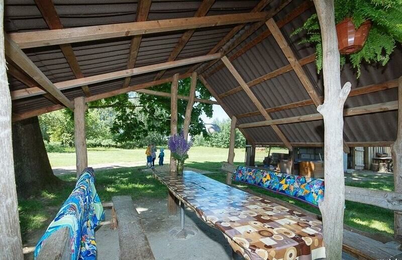 Территория усадьбы просторная и ухоженная. Здесь есть место для шашлыков, игр на открытом воздухе, беседка (в вечернее время предоставляется плед для тепла и комфорта), парковка, песочница для детей.