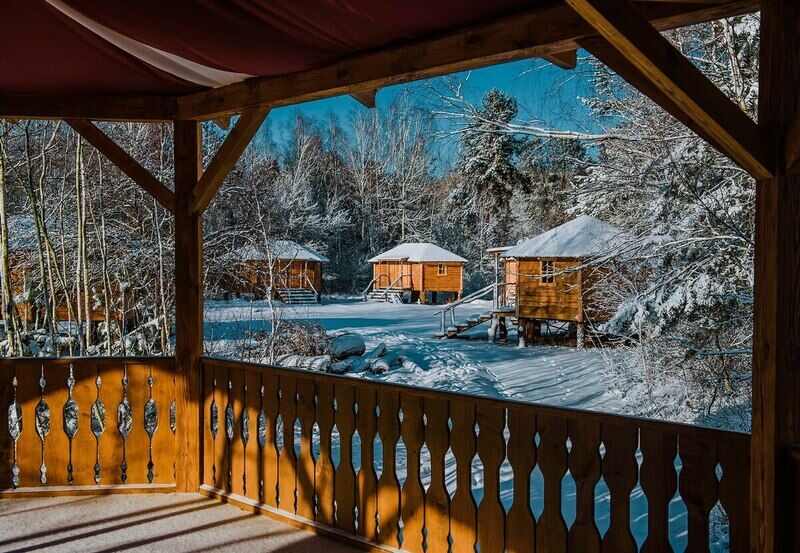 Отдельные домики, искусно выстроенные из натурального дерева. Более того, вся мебель в домиках также сделана из натурального дерева, что придает особый уют и неповторимость этому месту. Запах свежего сруба только усиливает позитивные эмоции и вызывает желание полностью раствориться в нем. Заходя в каждый из домиков, ты как будто оказываешься в своей детской сказке, или же у родной далекой бабушки, каждую секунду наслаждаясь ставшей такой редкой в наши дни уютной и натуральной простотой.