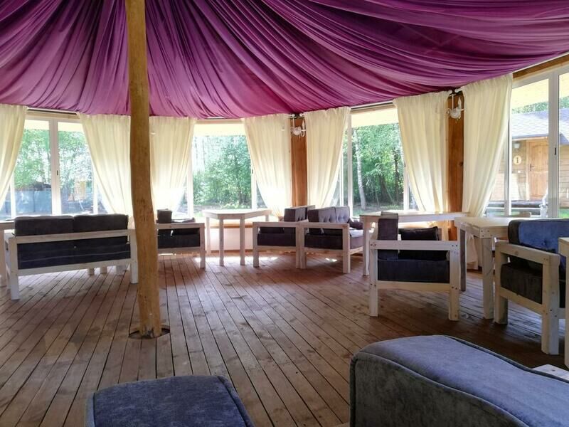 насладиться прохладительными напитками или же чашечкой чая или кофе. Здание ресторана выстроено из дерева, и непринужденный дизайн и интерьер помещения помогают чувствовать себя расслабленно и спокойно, растворяясь в окружающей атмосфере и полностью погружаясь в веселую компанию и в мир настоящего отдыха за городом, так необходимого в быстром темпе современного мира.Мангальная зона