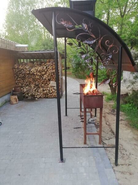 С мангалом, решёткой барбекю и шампурами.