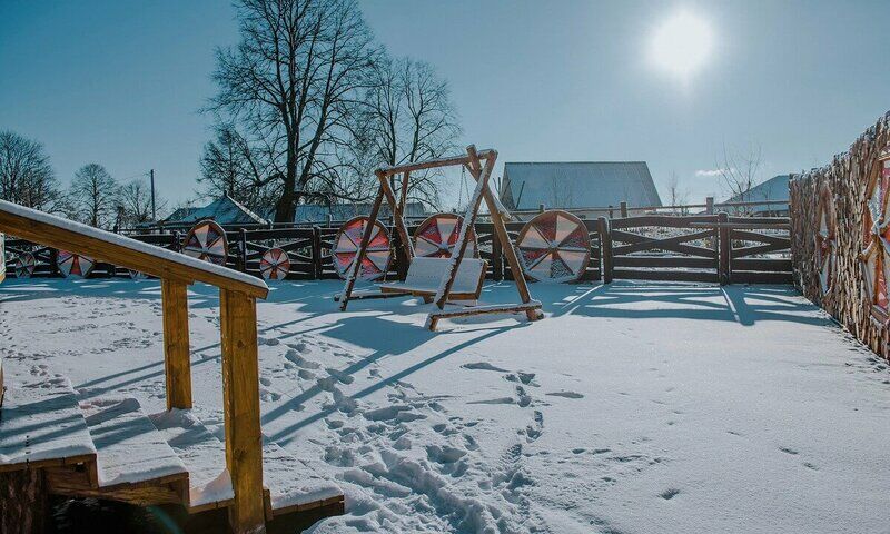 Русская парная на дровах с мокрым паром рассчитана на компанию из 10 гостей. Также в банном комплексе имеется: обливное ведро, веники и душ.