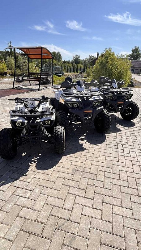 На территории также расположены пять гостевых домиков с кухнями и мангальными зонами, где можно приготовить свои любимые блюда. Для тех, кто любит активный отдых, есть баня на дровах, крытый бассейн летом, беседки с мангалами, площадка для волейбола, настольный теннис, бадминтон и квадроциклы. Любители рыбалки оценят пруд с разнообразной рыбой. А родниковая вода подарит вам незабываемое ощущение свежести.