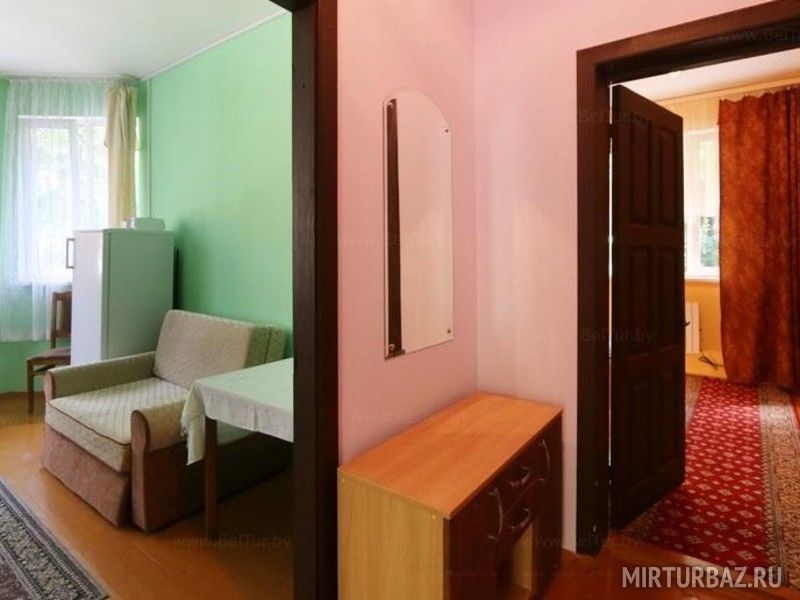 Состоит из трёх одинаковых по оснащению двухместных двухкомнатных номеров. Каждый номер состоит из: гостиной (раскладывающийся диван, холодильник, микроволновая печь, электрический чайник, набор посуды), спальной комнаты, в которой установлена двухспальная кровать, и общего на номер санузла (туалет, умывальник, душ).