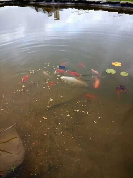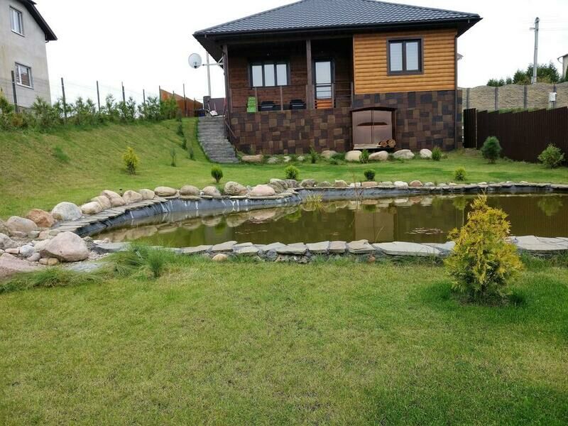 На территории есть маленький зарыбленный прудик.