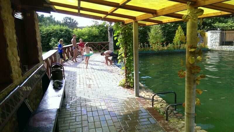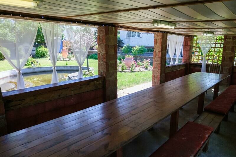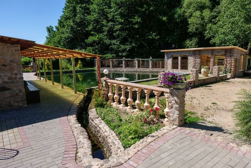 К услугам гостей жилой дом и комфортная беседка на 40-45 человек с барбекю, а также гостевой домик с баней возле большого водоема с родниковой водой и веранды на 20-25 человек с печью.