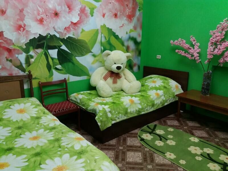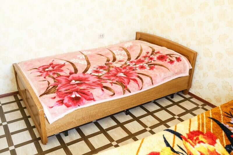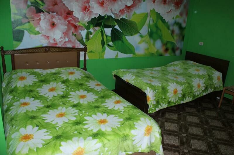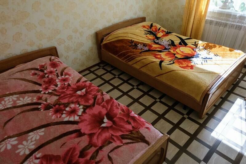 Небольшой четырехместный номер с двумя двуспальными кроватями. Площадь номера - 12 м².