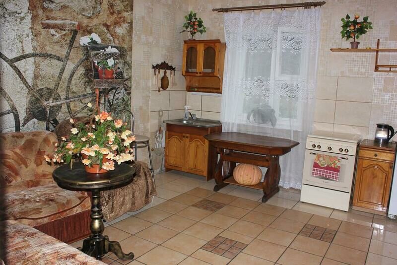 Гостевой домик — это русская баня на дровах, душевая, комната отдыха на 20 человек с камином, спальня (всего 5-6 спальных мест), санузел, веранда, DVD с караоке, спутниковое телевидение (600 каналов), микроволновая печь, электрочайник, посуда. Жилой дом и гостевой домик сдаются как вместе, так и отдельно, на сутки и сеансы.
