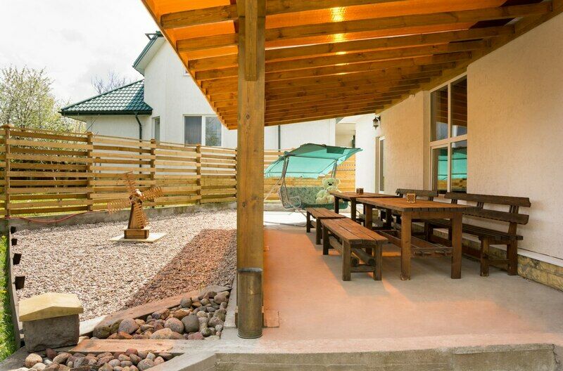 Те, кто любит попариться «Гостевой дом» предлагает и просторную баню, большую купель с фильтрацией, а также душ.