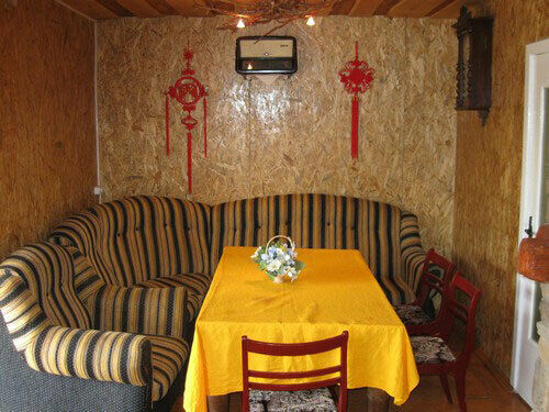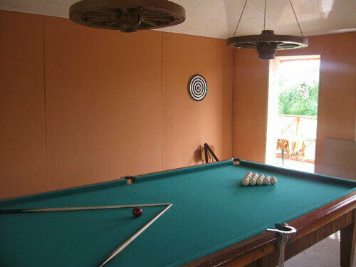 В банкетном зале большой угловой диван, с которого можно насладиться красотой пылающего камина или же посмотреть спутниковое телевидение и послушать музыкальный центр.