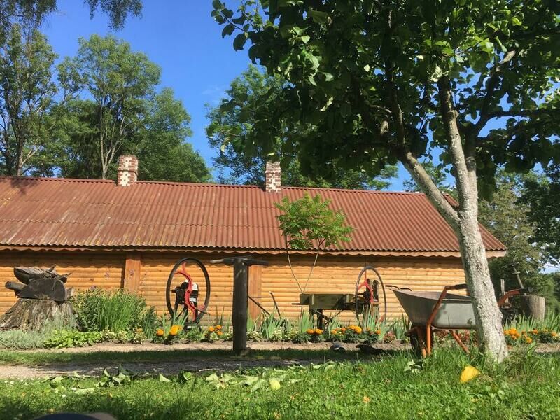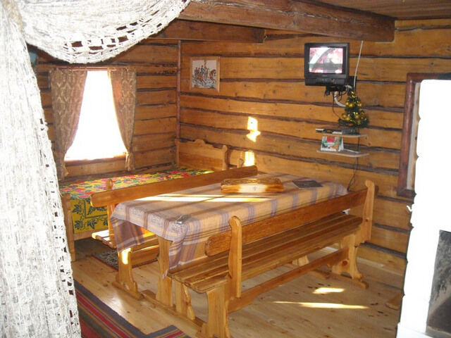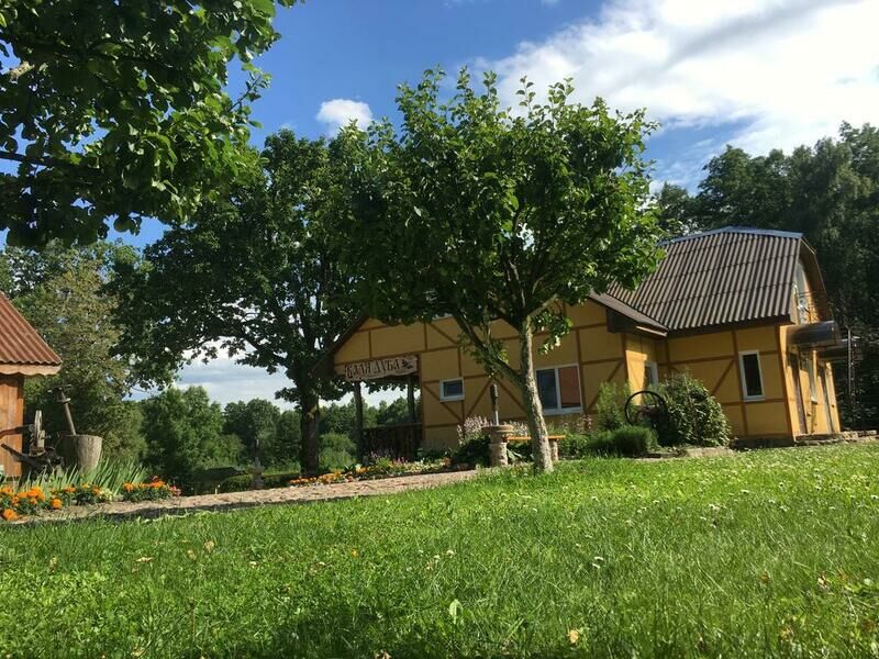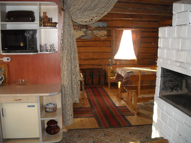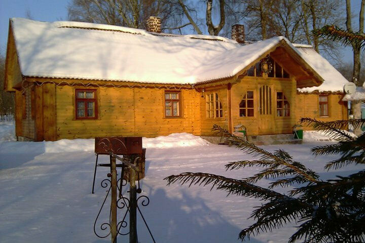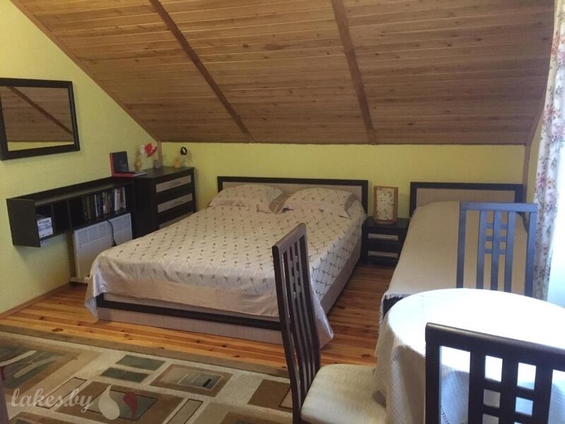 Символом усадьбы является раскидистый дуб, отражаемый в озерной глади, под кроной которого вы сможете замечательно провести выходные или отпуск. Хозяева всегда радушно встречают гостей и готовы предложить полностью благоустроенный дом с двумя комнатами, мини кухней, русскими печами и санузлом. Многое в доме, включая мебель, сделано руками хозяина. Самотканые покрывала на кроватях, коврики ручной работы на полу, добротные деревянные скамьи и стол, импровизированный бар на месте бывшего оконного проема, старые вышивки, которые прекрасно смотрятся на стенах дома, напоминают о самобытности белорусских традиций. Каждое бревно в основании дома, каждый камешек на дорожке положены с душой. Видимо поэтому здесь царит атмосфера тепла и уюта.