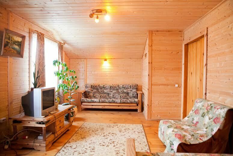 За основу взяли все необходимое для комфортного времяпрепровождения. Например, в двухэтажном гостевом доме есть просторная гостиная и 4 спальных комнаты (расчитанных на 8-10 спальных мест), бесплатный Wi-Fi, 2 телевизора и музыкальный центр. Здесь вас ждут и две русских бани на дровах с комнатой для отдыха (2 спальных места).