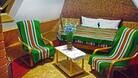 Номер прекрасно подойдёт для влюблённой пары или семьи. В комнате стоит большой удобный диван и раскладывающийся в виде кровати пуфик, небольшой шкаф, передвижной столик, LCD телевизор со спутниковым приёмником.