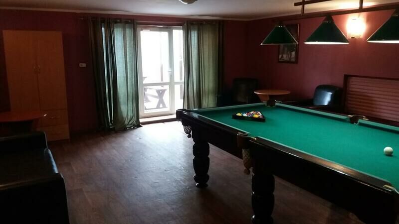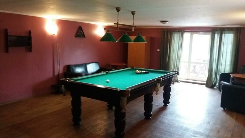 Провести время в уютной обстановке, расслабиться в бане, выиграть пару партий в бильярд и охладиться в бассейне - все это возможно даже не выезжая из города! Дом вместительный, уютный и оборудованный всех необходимой бытовой техникой (газовой плитой, холодильником, микроволновкой), кухонной утварью, музыкальной аппаратурой, спутниковым TV и сантехникой в ванной комнате и удобной мебелью. Интерьер оформлен со вкусом.
