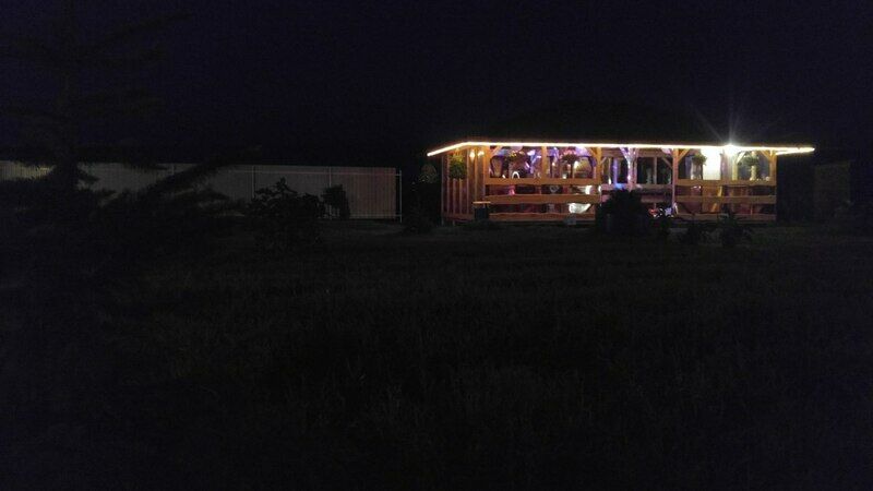 Для проведения различных праздничных мероприятий имеется вместительная закрытая беседка на 35-40 персон с водоснабжением, большим витринным холодильником, отличным музыкальным и световым оформлением.