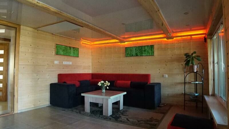 В доме 4 комнаты, 1 из них мансардная. Вместимость дома до 6-ти человек, дополнительно можно подселить еще 4 человека. Размер номера 80 м².