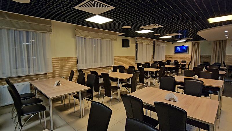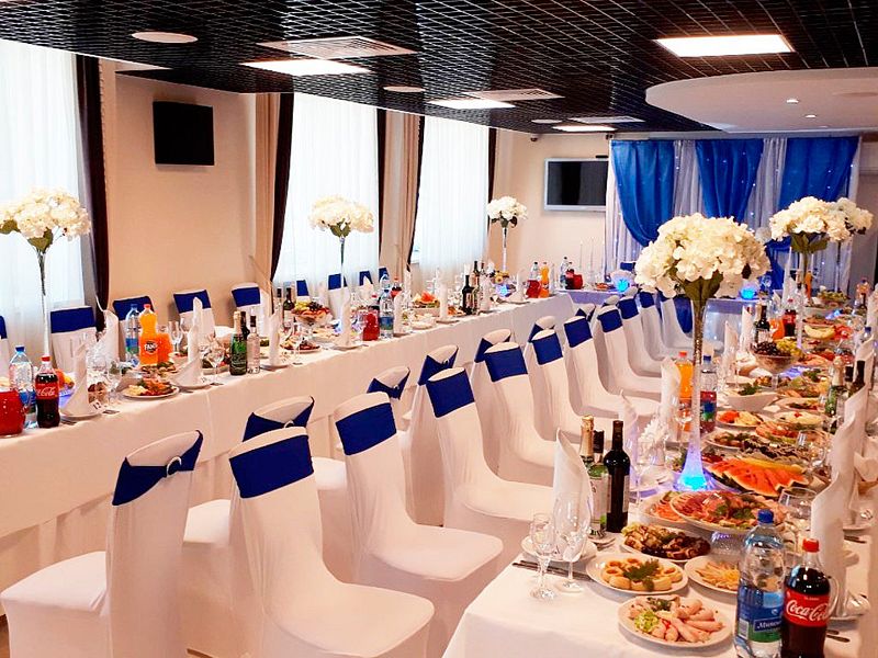 На втором этаже гостиницы располагается комфортабельный банкетный зал, идеально подходящий для организации свадеб, банкетов и различных торжеств. Это пространство станет отличным выбором для тех, кто хочет провести незабываемое событие в стильной обстановке.