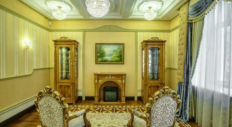 Главным элементом декора этого зала является действующий камин, который способствует созданию уютной и теплой атмосферы. Центральную часть зала занимает овальный стол со стульями, рассчитанный на 16 человек. В зале комфортно может располагаться до 30 человек. Зал предназначен для проведения чаепития, званых обедов и ужинов, переговоров.
