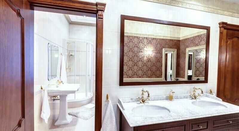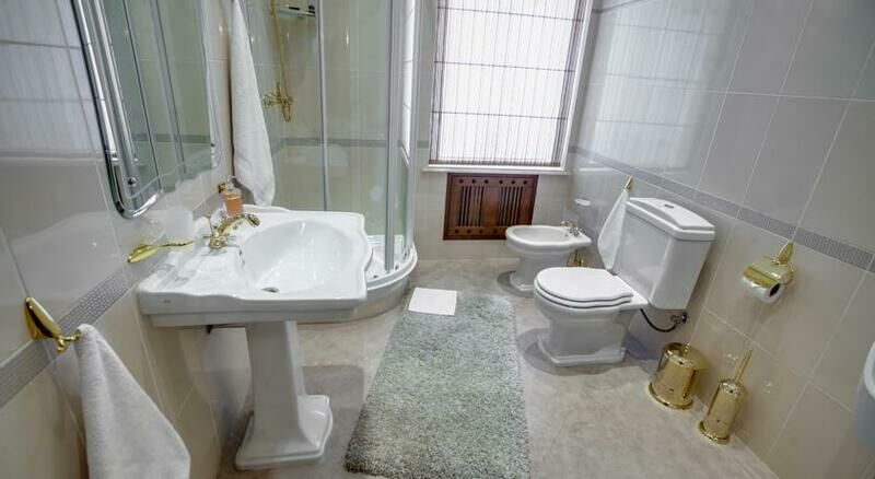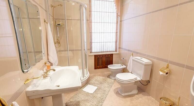 Душ, Ванна, Фен, Халат, Бесплатные туалетные принадлежности, Туалет, Ванная комната, Тапочки, Дополнительный туалет, Биде, Туалетная бумага.