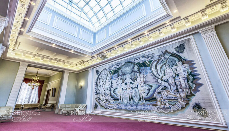 Каждый зал выполнен в персональном дизайнерском исполнении и оснащен современным оборудованием. Элегантную атмосферу холла подчеркивают гобелен, панорамная крыша, изысканная лепнина и зимний сад.