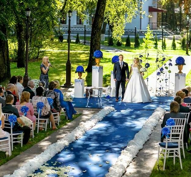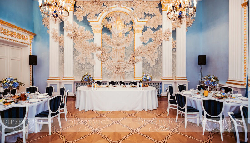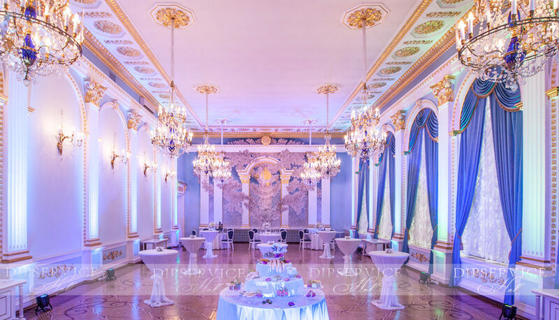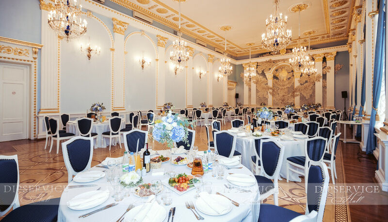В зале возможна любая, удобная расстановка столов, организация функциональных зон, музыкальное сопровождение, как живое, так и в записи, а также демонстрация видеоматериалов во время торжества. Кроме того, Голубой зал идеально подходит для проведения выездных церемоний регистрации брака и организаций свадебных торжеств.
