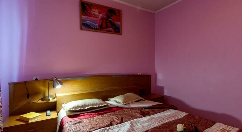 Общая ванная комната находится в коридоре. Двуспальная кровать.