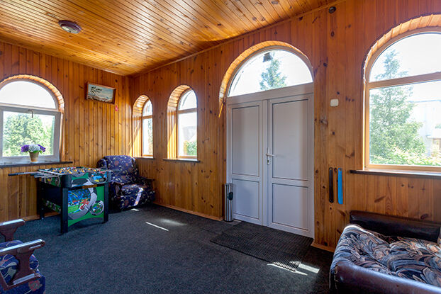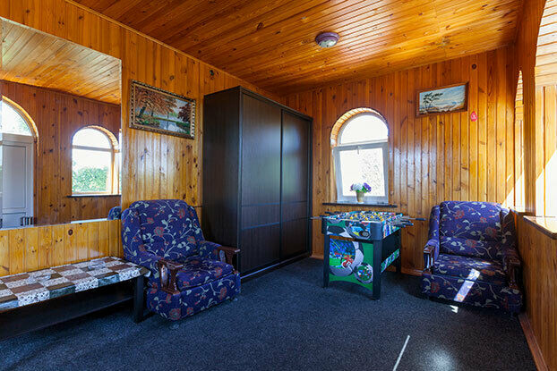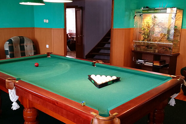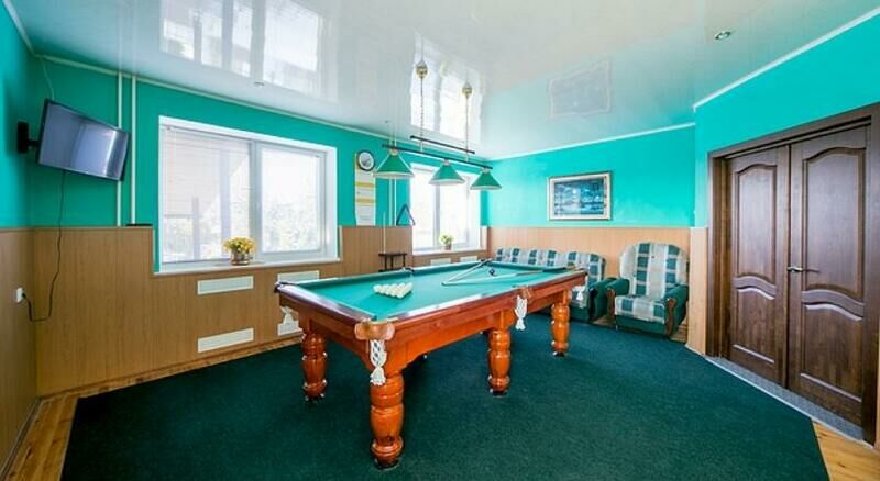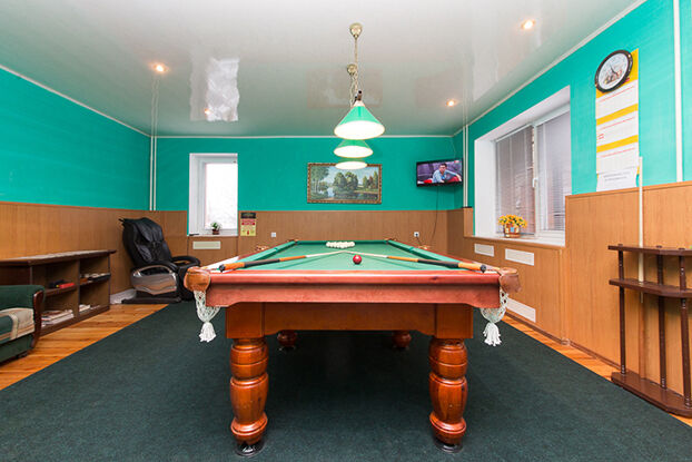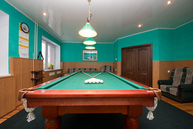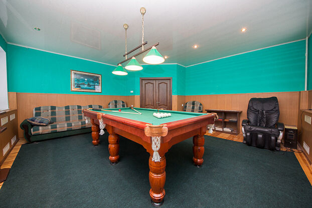 К услугам любителей бильярда - 9 футовый стол для русского бильярда, мягкие диваны, спутниковое телевидение.