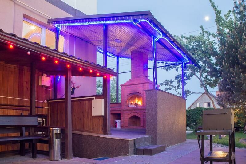 Есть крытая терраса, оборудованное место для приготовления шашлыка, мангал со всеми необходимыми атрибутами.
