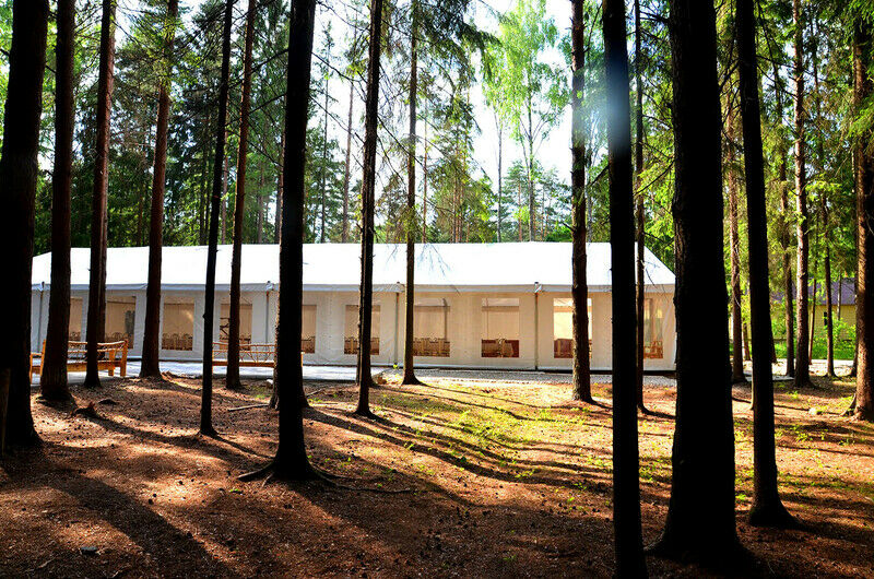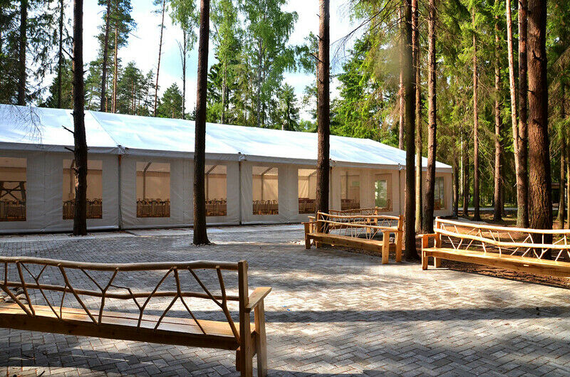 Для свадеб, конференций и корпоративного отдыха предлагается большой современный шатер площадью 450 м2 в живописном лесу всего в 5 км от Минска.