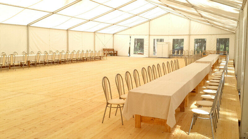 Шатер таких размеров - единственный в Беларуси и может вместить до 500 человек. А для мероприятия в 100 человек у Вас будет место где поставить сцену с танцполом и никаких ограничений по рассадке Ваших гостей.Время аренды: с 10.00 часов до 23.00 часов.