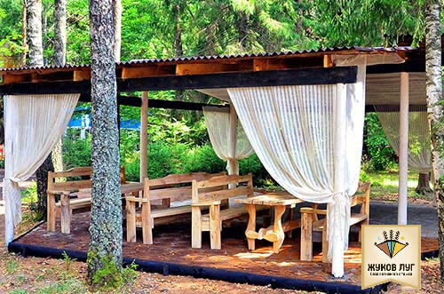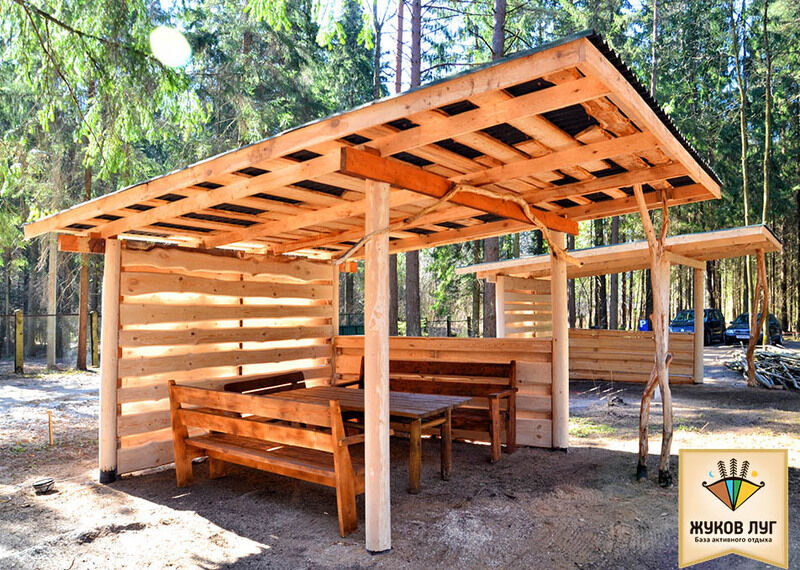 Для небольших компаний есть несколько вариантов беседок (открытых и закрытых). Все беседки имеют электричество и освещение, оборудованы мангалами.