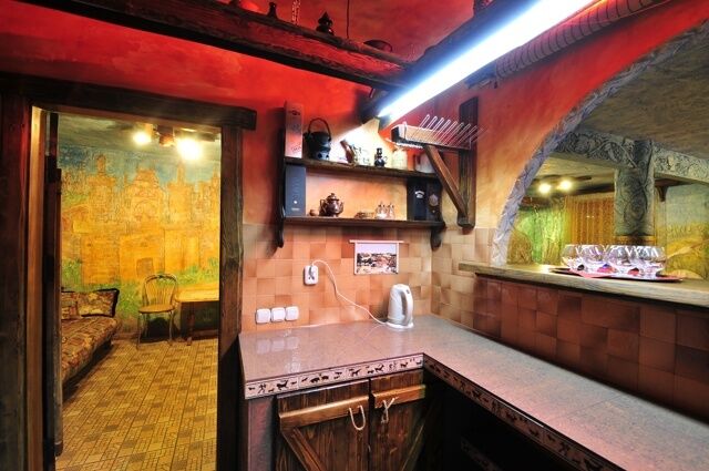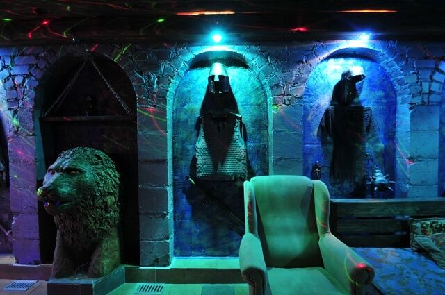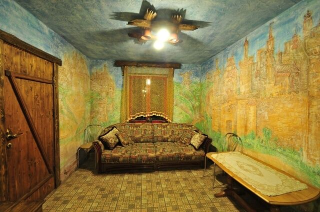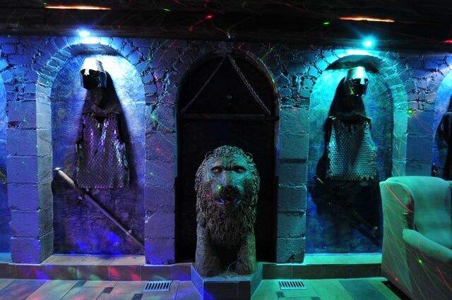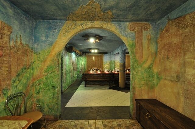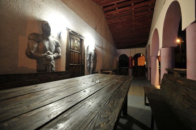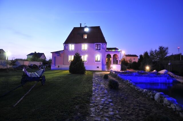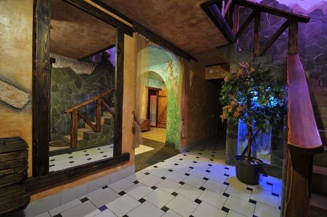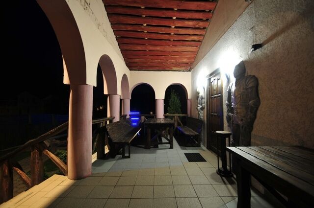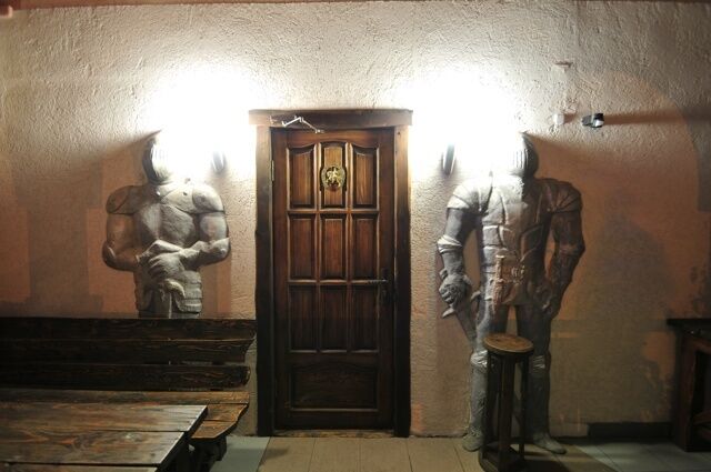 Читать полностьюВ усадьбе присутствует атмосфера далеких рыцарских времен. Более 400м2 художественной лепки и декоративной штукатурки. Это: герб Великого княжества Литовского, сцена из выдающегося произведения белорусского поэта М. Гусовского «Песня о зубре» изображенная в виде живописи на стене (охота короля Витовта на тура ), богатырские рыцари охраняющие усадьбу. Также можно увидеть стены старого города и символ Менска. Для перевоплощения в другой мир и образ предлагается фото на память в кольчуге со шлемом и мячом в руке.