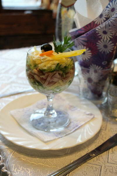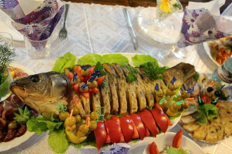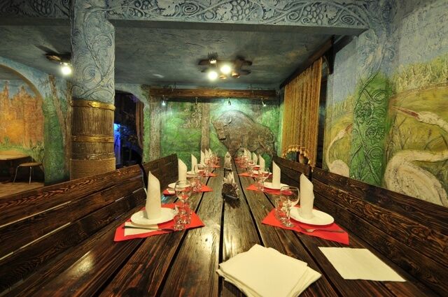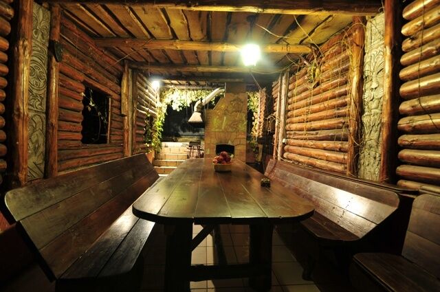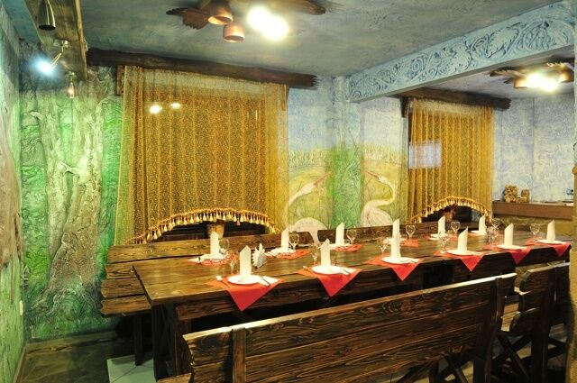 Фирменные блюда усадьбы: плов в казане, люля-кебаб, манты, лагман, блины по-царски, паэлья, уха с форелью, шашлык, бигус по-белорусски, фаршированный карп, холодец, цеппелины по-литовски.