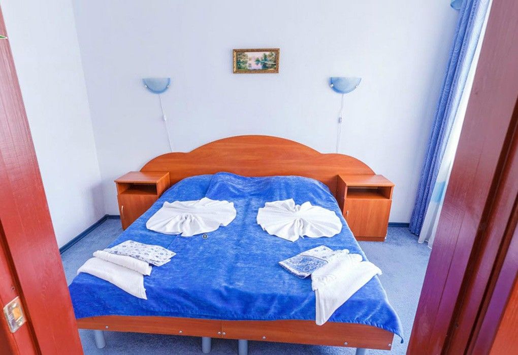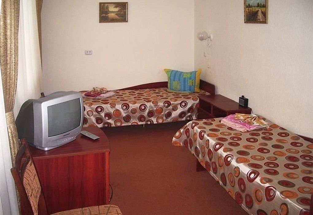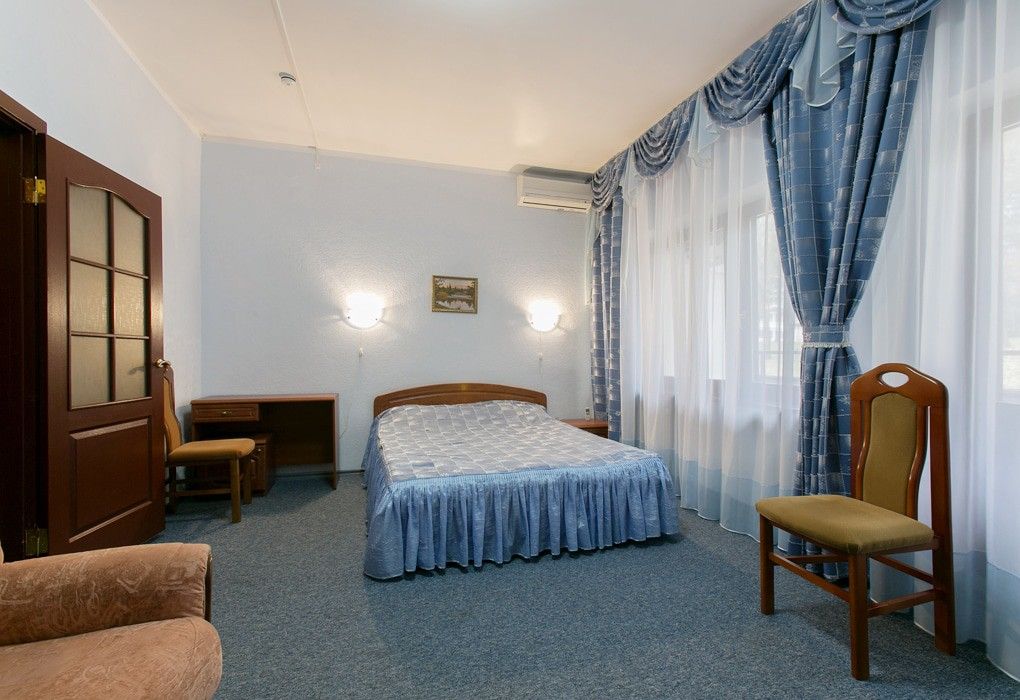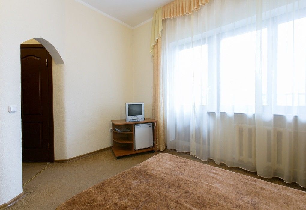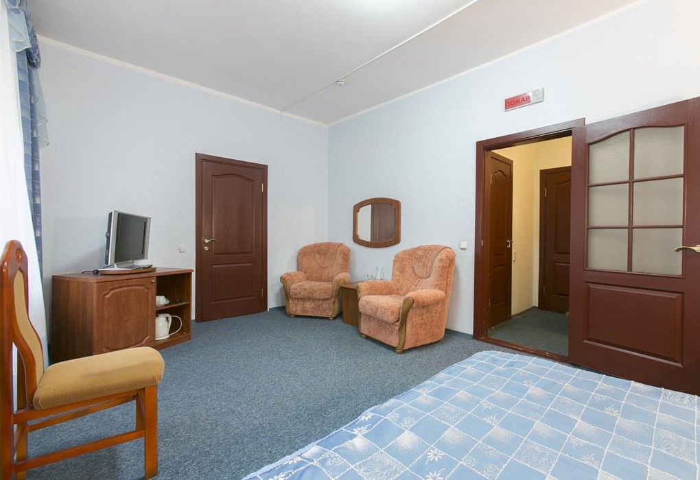 ДостоинстваНомер в точности как в описании, телевизор работал, но показывал только 6 каналов. Питание шведский стол. В первом корпусе работает кафе, где можно заказать закуски и алкоголь.Из развлечений экскурсии и походы в театр, несколько раз организовывали концерты прям в санатории. Интернет работает отлично не только в жилых корпусах, но и в столовой и грязелечебнице. Лечебная база многопрофильная, есть бесплатные и платные процедуры. Через 2 автобусные остановки работает аквапарк.