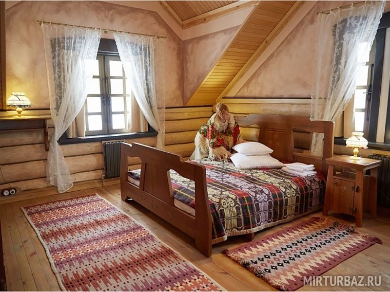 Вне зависимости от времени года, усадьба на Нарочи может предложить своим гостям 12 вариантов для размещения. Дома представляют собой комфортабельные строения, выполненные в этническом стиле. Во всех домах усадьбы присутствуют