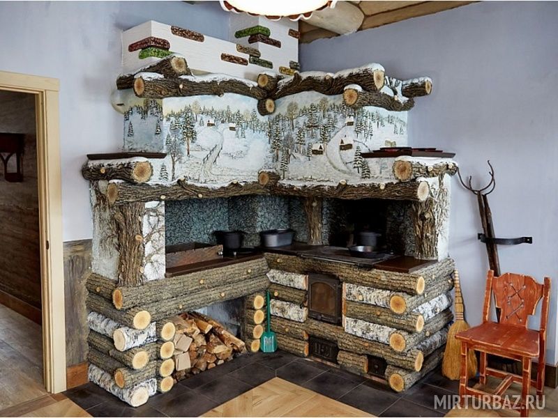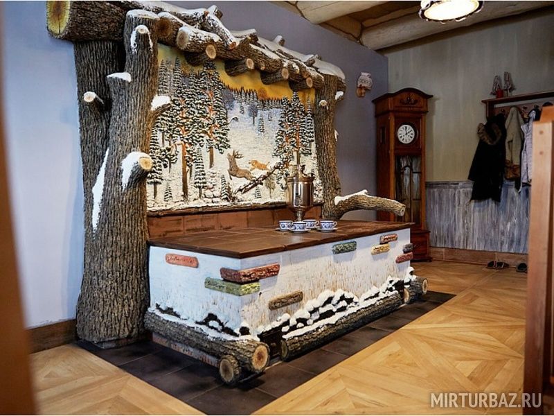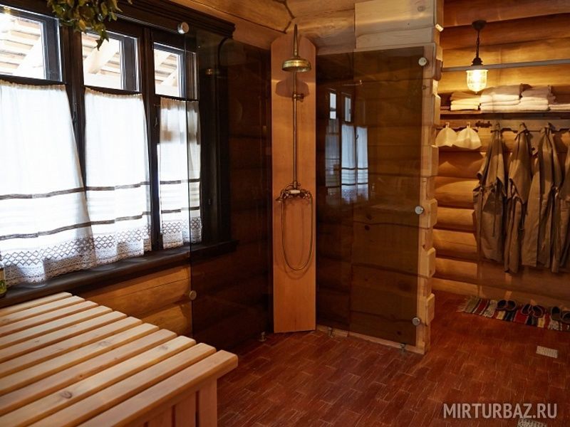 места для проведения досуга, спальные комнаты, санузел, душевая, парильная комната и традиционная русская печь.
