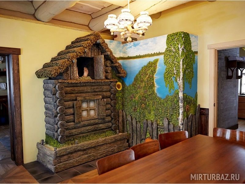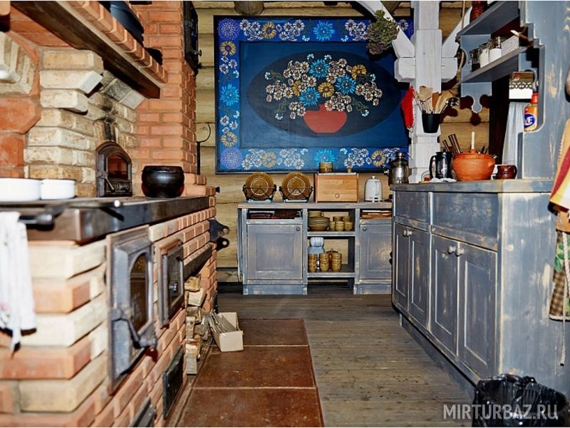 3-я комната - кухня-столовая с большим обеденным столом и печью.