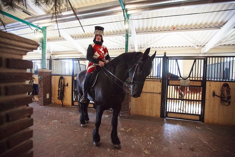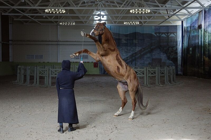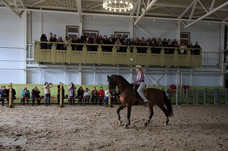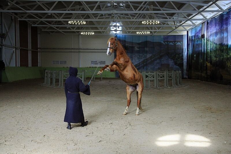 Конно-спортивный комплекс был запроектирован в самом начале, сразу после общинных и мещанского дома. Конюшня и манеж были воссозданы при участии немецких специалистов, под их непосредственным контролем. Лошади и всадники-герои мировых шоу! А шоу-группа колесила по миру в составе проекта «100 лучших мировых цирковых представлений».