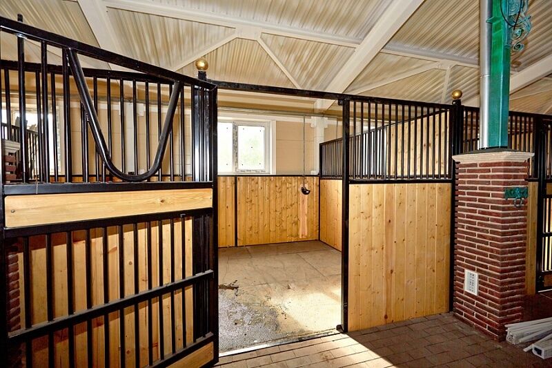 В экстерьере комплекса следовали традициям XIX века: стены стойл выполнены из красного кирпича, решетки – украшены коваными орнаментами, потолочные балки изготовлены по старой технологии. Даже трибуны, окружающие манеж точно имитируют те, которые возводились в старину, а устройству кормушек для лошадей-нет равных.