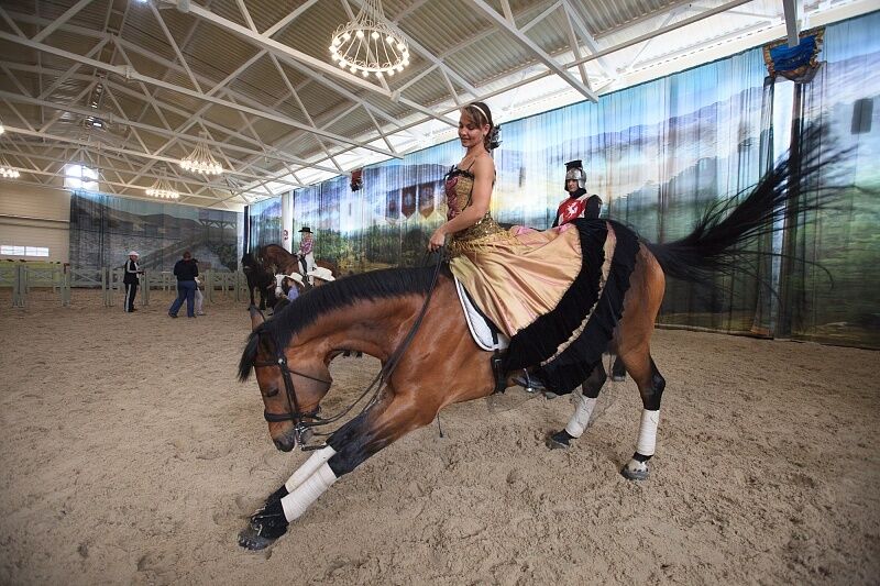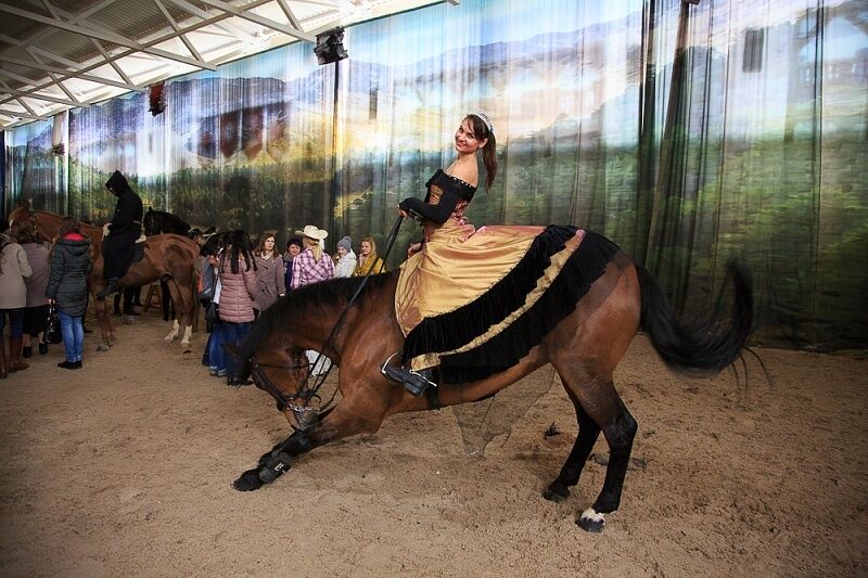 Добро пожаловать на трибуны манежа. Конное шоу – это настоящий спектакль со своей интригой: все начинается с шоу теней, затем элементы выездки, которые сами по себе завораживают, затем идут энергичные заезды, и заканчивается все – прыжками! Песок будет лететь под самую крышу под копытами скакунов. Длится представление полтора часа. Есть детская и взрослые программы. Женщины с замиранием сердца будут играть в принцесс, за которых сражаются настоящие рыцари.