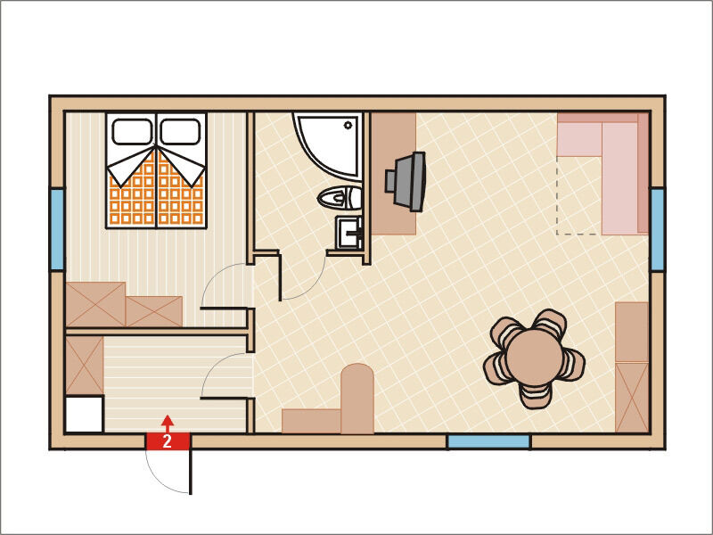Однокомнатный одноэтажный дом с двуспальной кроватью. Вместимость до 2-х человек.
